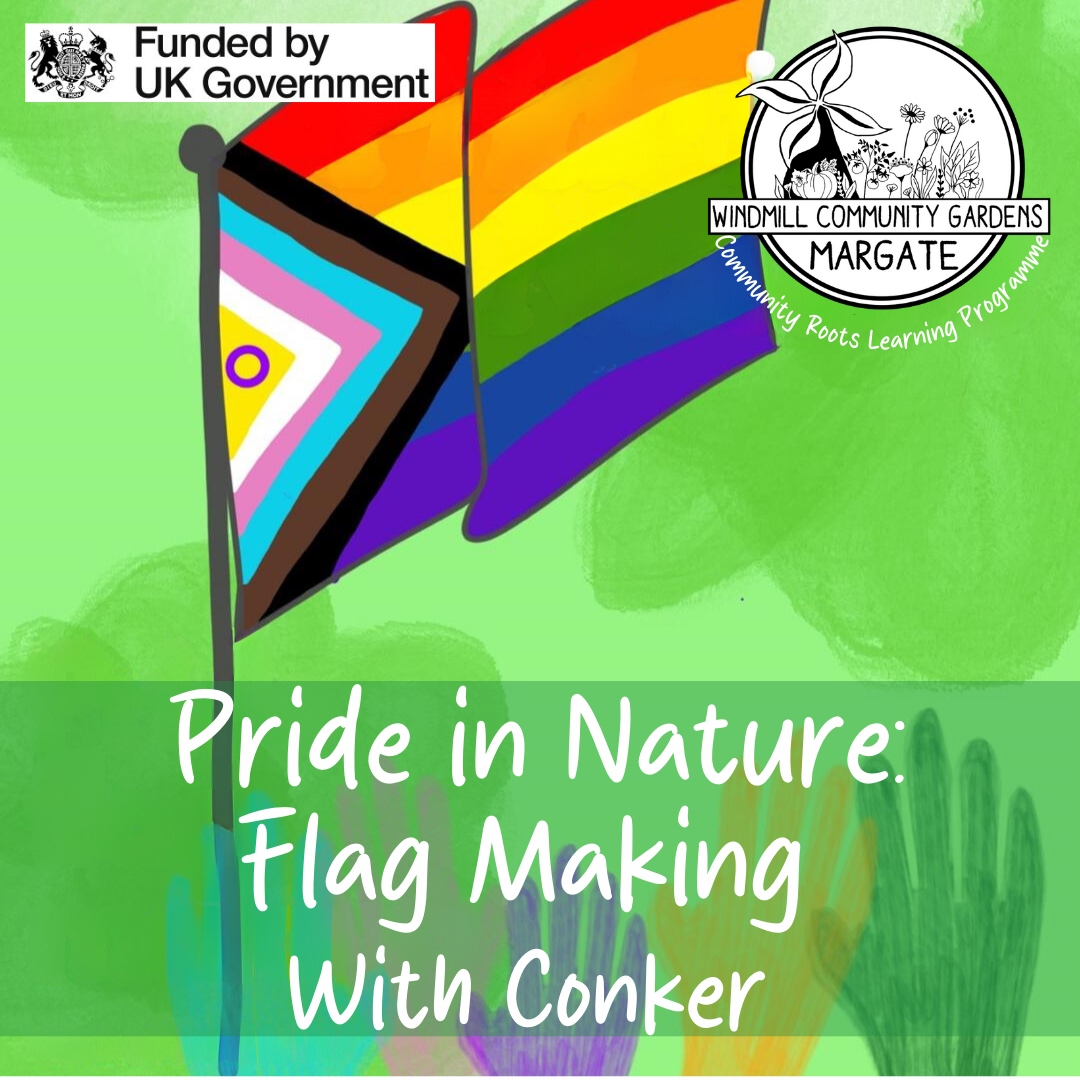 Join Conker at the Windmill Community Gardens in Margate and immerse yourself in nature while creating Pride mini flags. No prior skills are necessary. Feel free to bring your own fabric and appliqués to attach to your flag. Pride in Nature was created to bring like-minded individuals together to celebrate Pride in a warm, welcoming environment, away from the hustle and bustle.