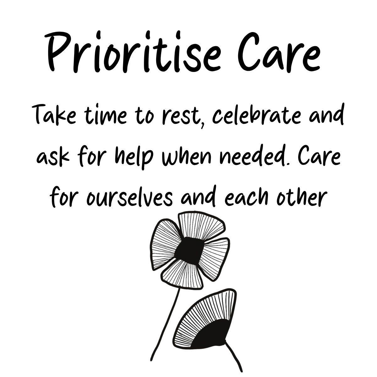 It reflects how we want to work together and the kind of environment we wish to nurture: one rooted in self-care, care for others, and care for the earth. This shared space can only flourish if we each commit to these principles. Please take time to read them carefully, and feel free to ask questions or seek support with anything that isn’t clear.
