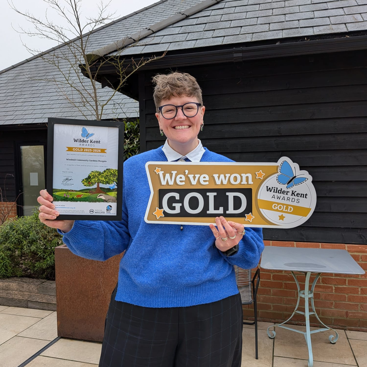 We are proud to share that Windmill Community Gardens Margate won GOLD at this year’s Wilder Kent Awards, we are honored with the recognition of the hard work by staff, volunteers and participants to help maintain a Wilder Kent. In our application we shared our work in creating natural habitats throughout both of our sites, our work in educating the future generations, partnering with local organisations for example Operation Turtle Dove to help conserve endangered species.